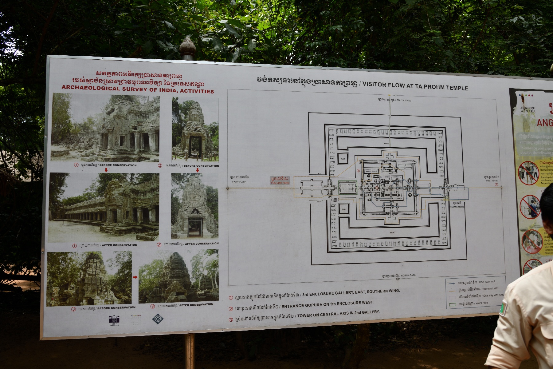 タ・プローム案内図を見ながら説明を受ける。整った構造の遺跡のようだが、中に入ったら何が何だかわからなくなってしまった。