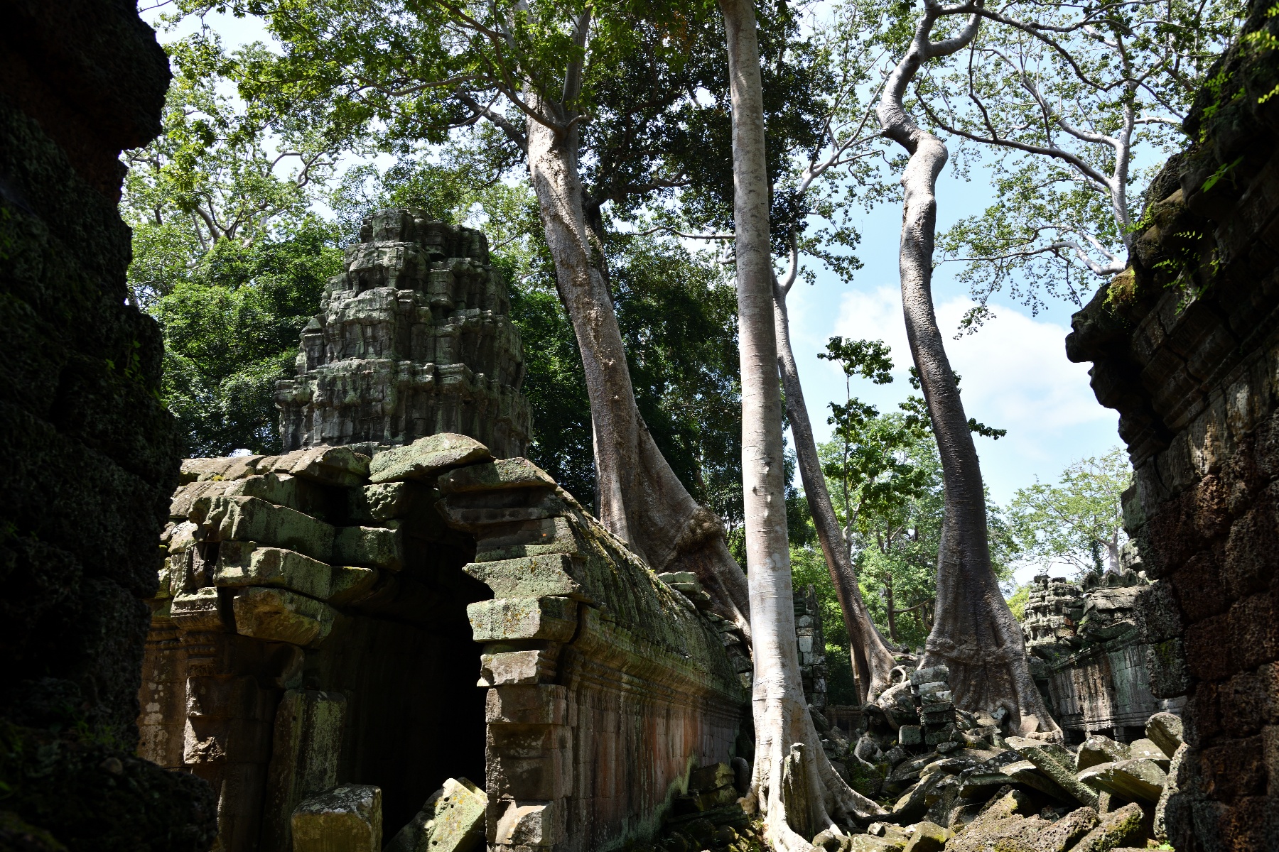 シェムリアップのタ・プローム入口付近の大きな木と東門の木(外からと中から)。