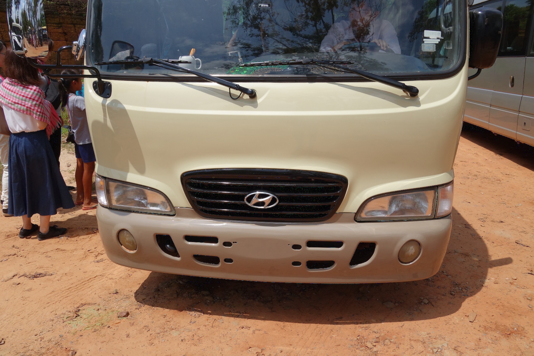 バンテアイ・スレイへ向かってシェムリアップ郊外を走行中。プレイルと言う古い遺跡の前を通り、更に集落の中を通って行く。