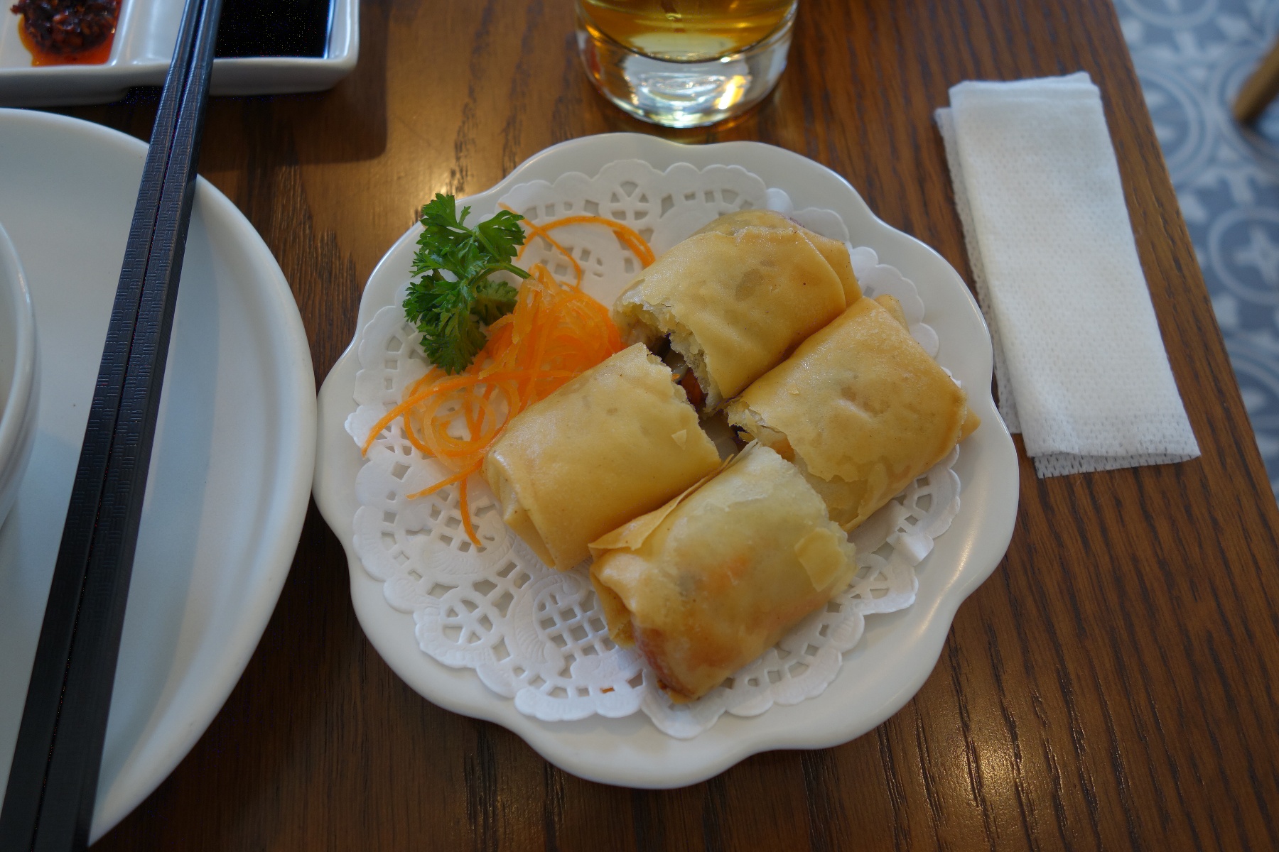 最初の料理は春巻き。