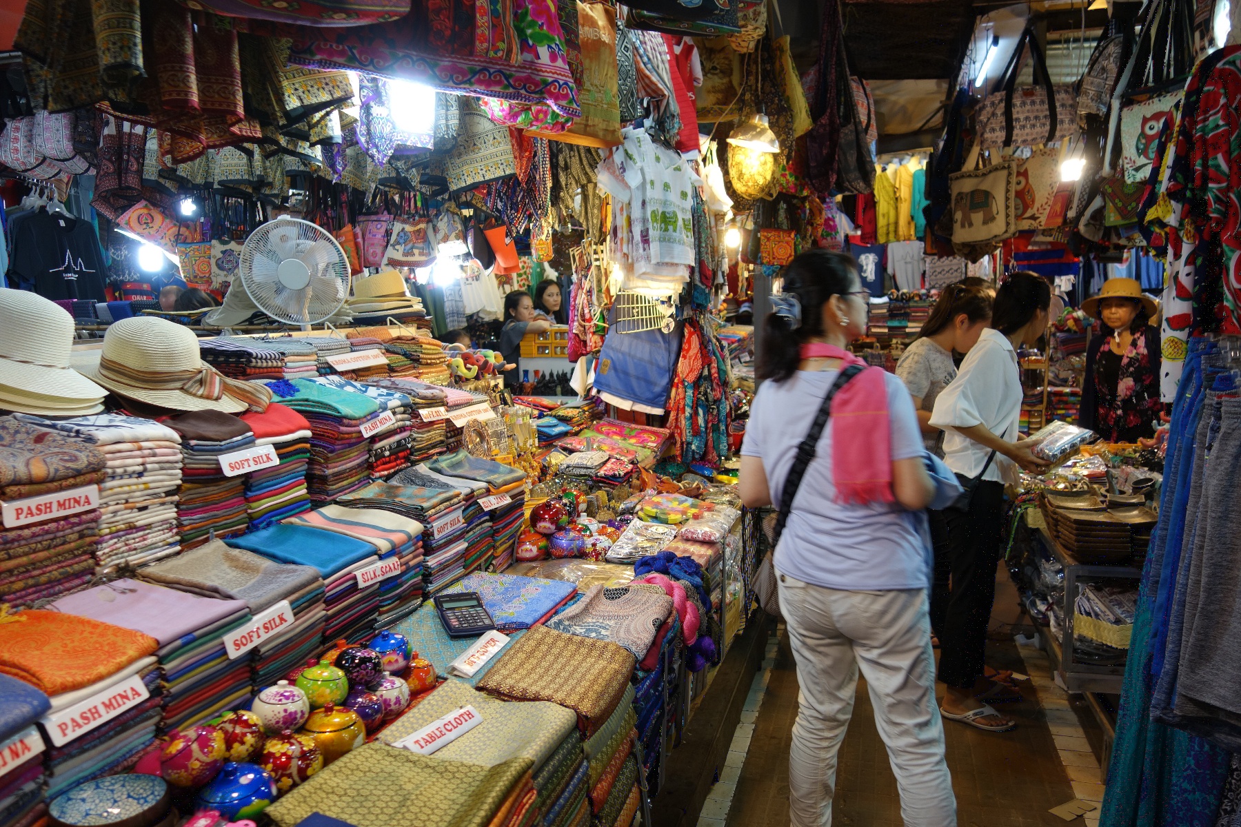 食後はオールドマーケットへ。このあたりにはシルク製品やバッグの店がある。
