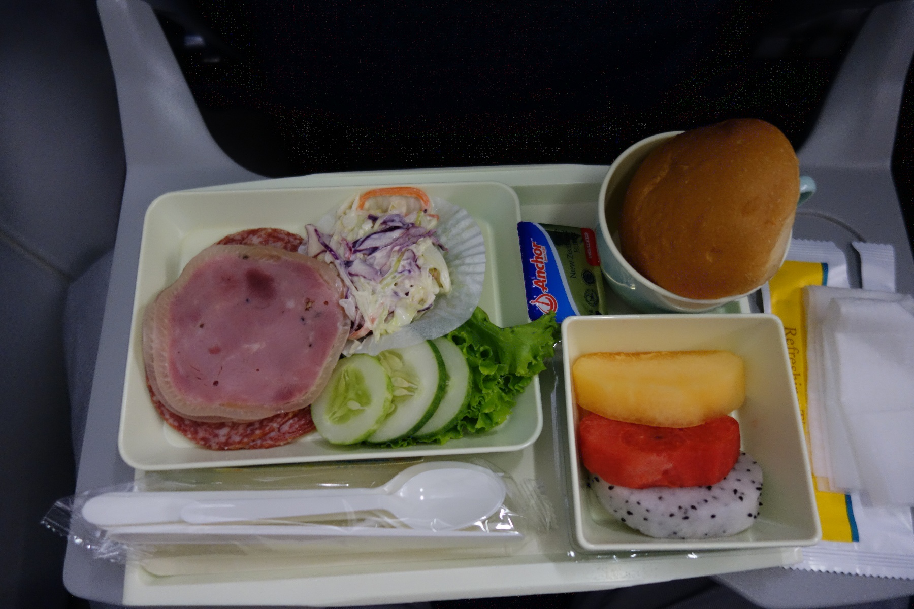 離陸後すぐに、これまた来た時とほぼ同じ軽食が出た。この日も夕食は特にないのでありがたい。