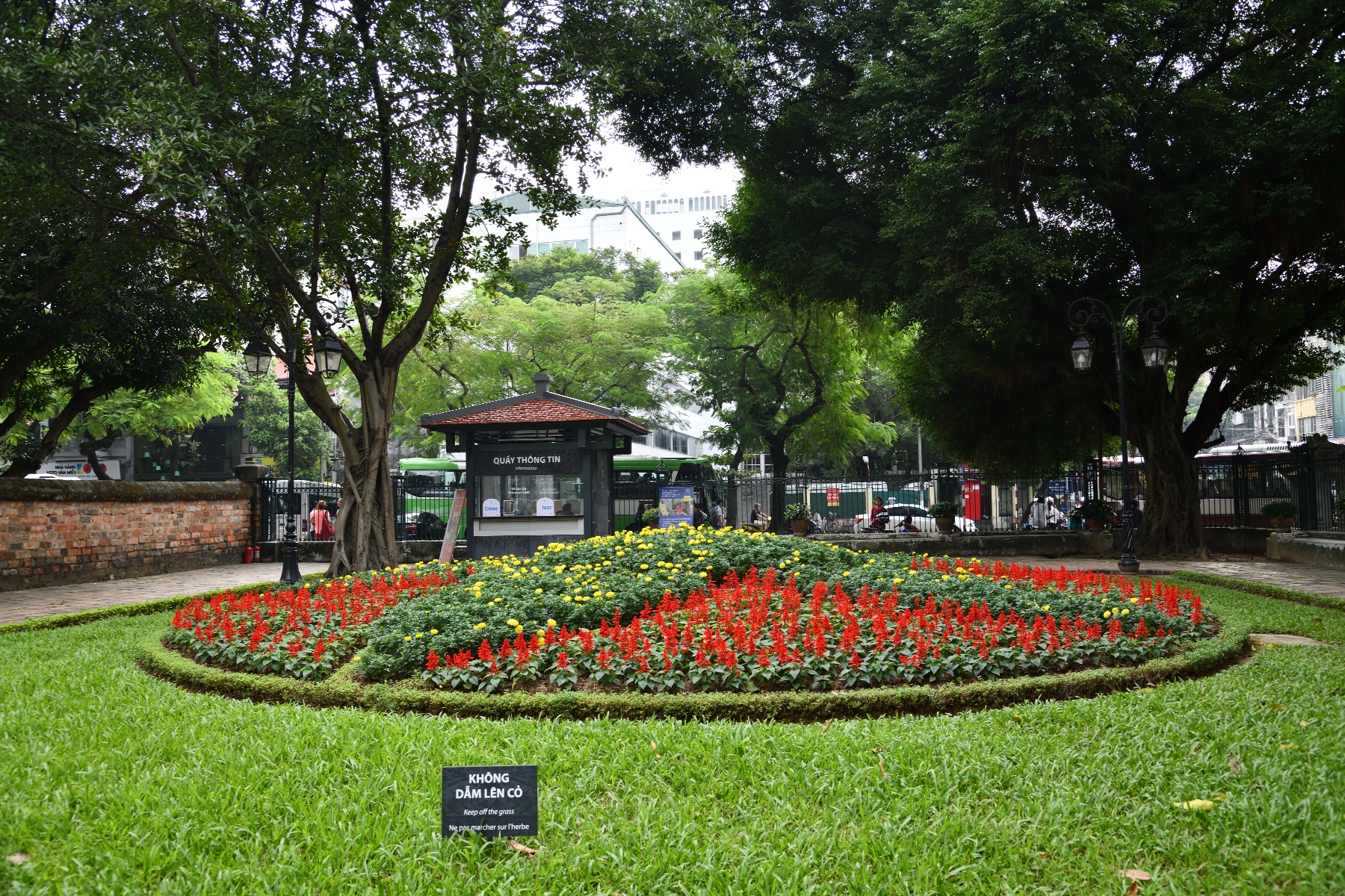 花壇の向こうに入場券売場が見えている。