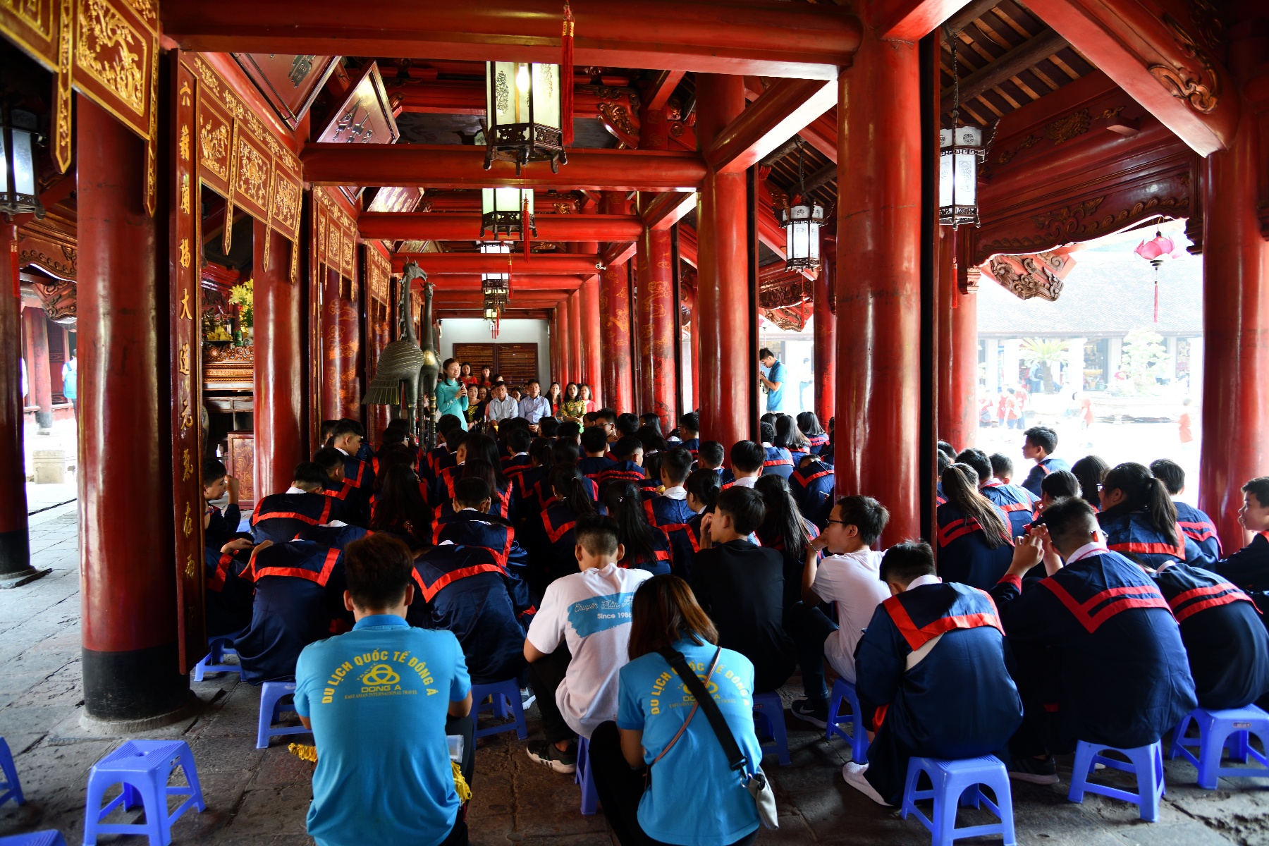 学生が集団で参拝していた。