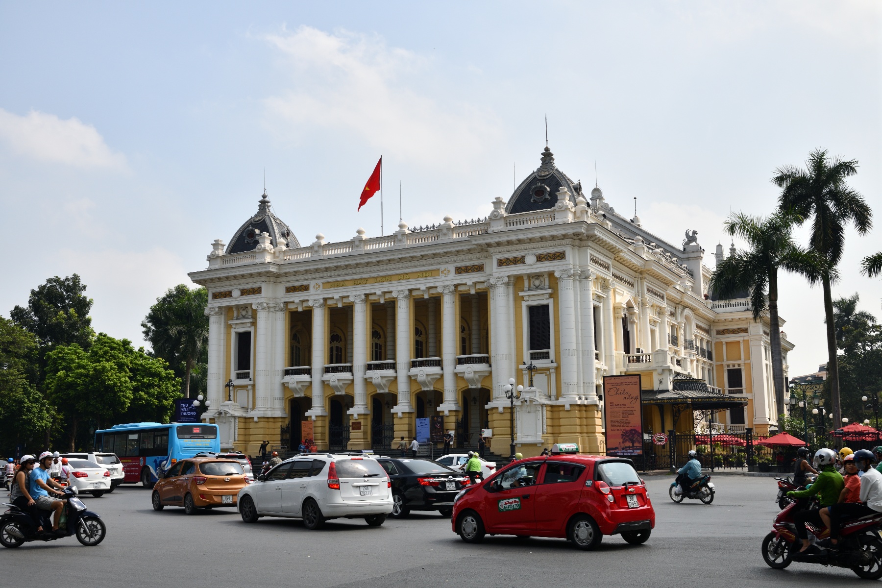フランス統治時代に建てられたオペラハウス。現在もオペラ、伝統芸能、コンサートなどが上演されている。今回は車を降りて外観を眺めただけ。
