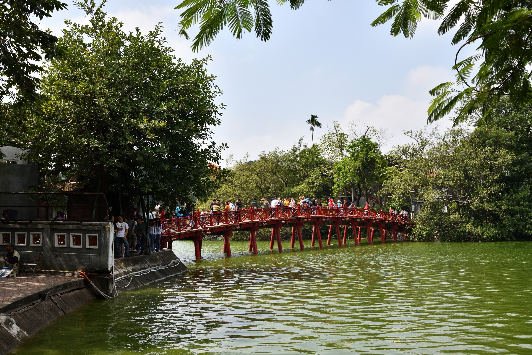 次はホアンキエム湖のゴックソン島にある玉山祠へ。島に渡る橋が見えてくる。