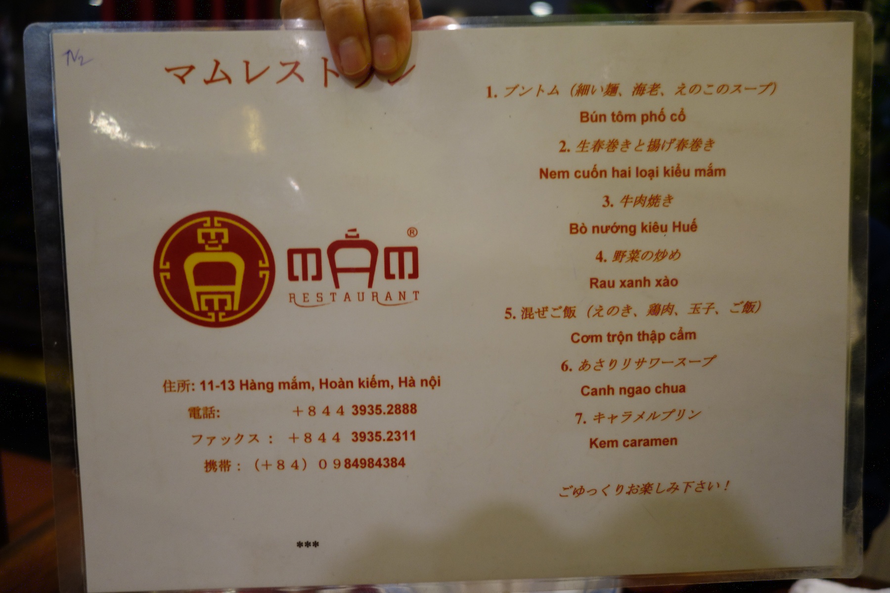 水上人形劇のシアターから歩いてこのマムレストランへ。夕食はベトナムコース料理。
