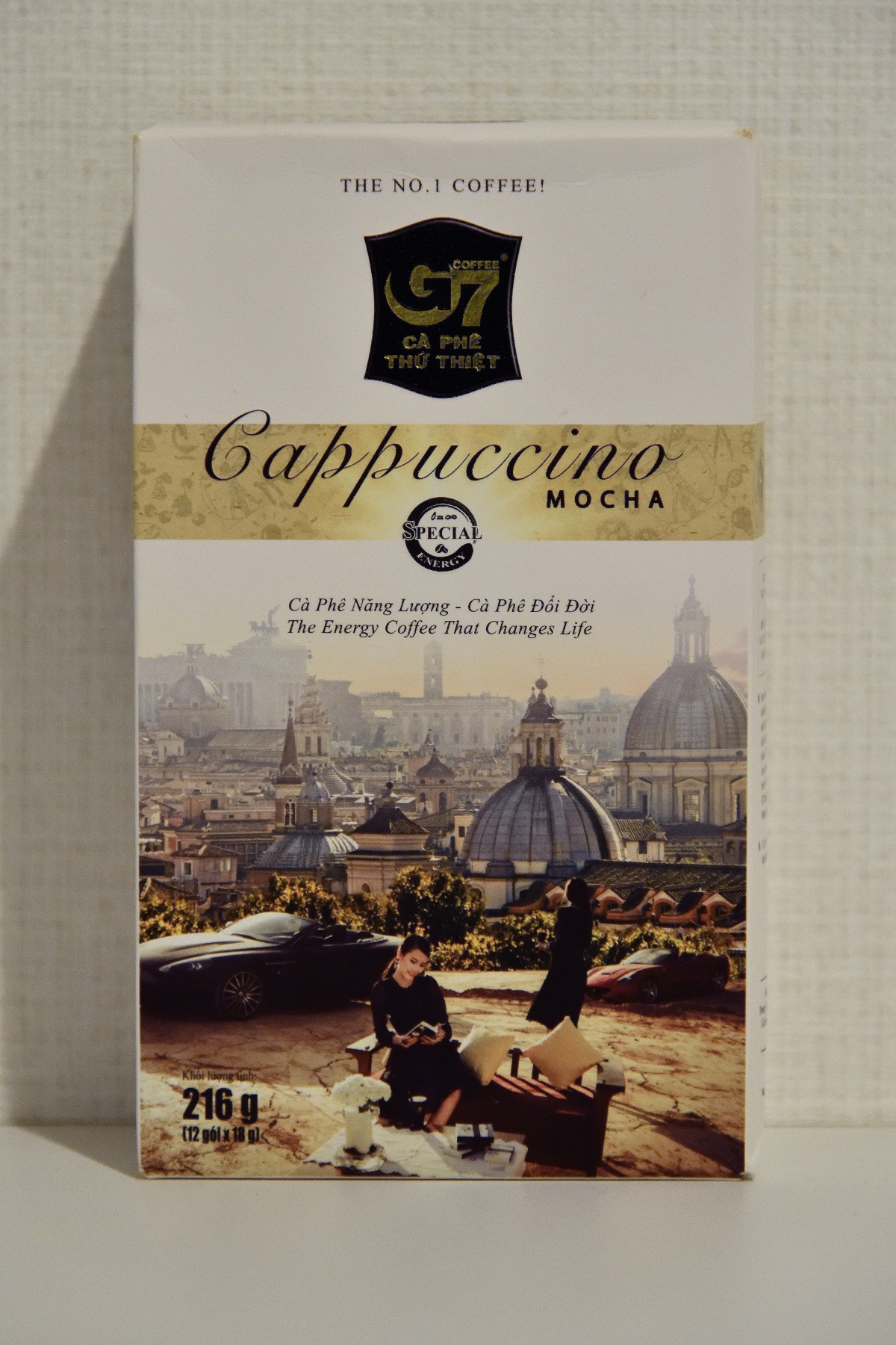 ハノイのロッテマートで購入したベトナムコーヒー。これはカプチーノモカだが色々なタイプのコーヒーが売られている。