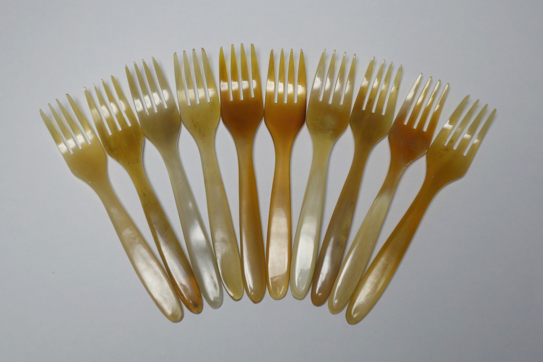 水牛の角でできたフォーク。ハノイ旧市街の別の雑貨店で購入。1個1個色も形も違うところが手作り感満載。