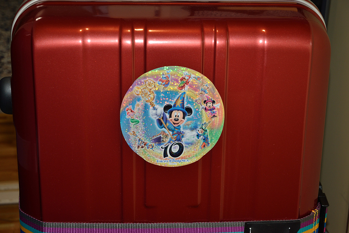 スーツケースは識別しやすいようベルトの他にTDSの10周年記念ステッカーも貼っておいた。凹凸があるので少々貼りにくい。