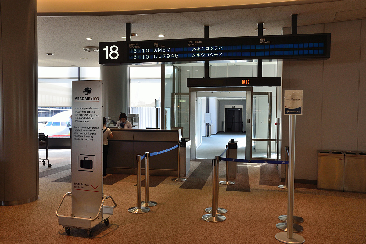 18番ゲートには大韓航空機が駐機している。アエロメヒコ57便は大韓航空との共同運航だがもしかしてこれに乗るのか?。