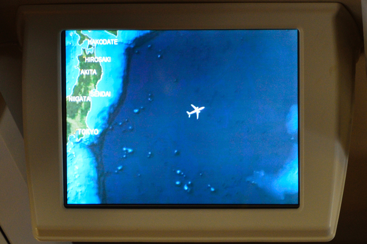 ぐっと拡大。最短距離だと東北東へ進むはずだが東南東に進んでいる。沖合の低気圧(台風?)を避けて飛行したのかも知れない。