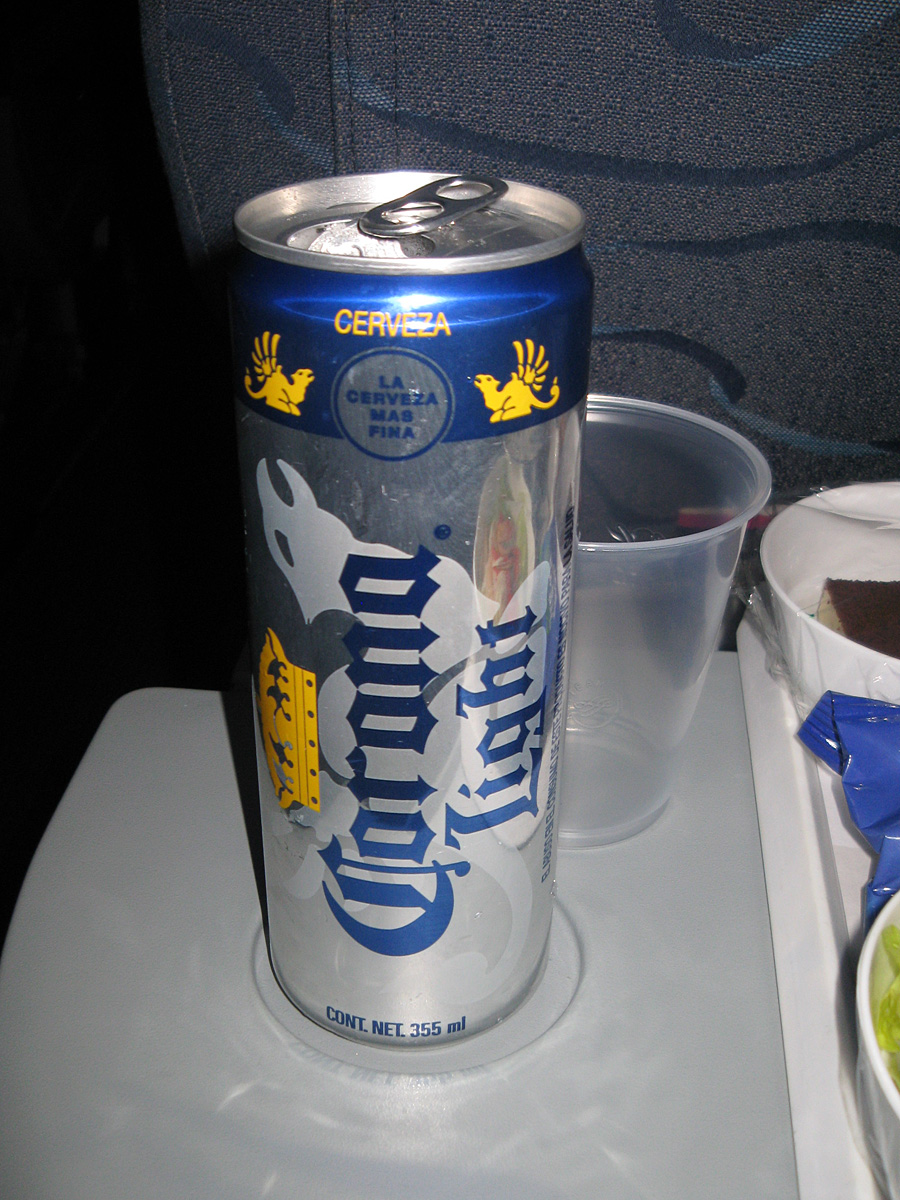 ありがたいことにアエロメヒコはビールも無料なので早速Corona Lightを飲んだ。ビール三昧のマヤ・アステカ紀行が始まった(^o^)。