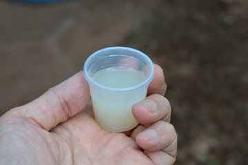 次に竜舌蘭から造る薬の試飲会。薬と言っていたが、これは竜舌蘭で造る醸造酒で見かけも味もどぶろく風のお酒だ。これを蒸留するとテキーラになるのだろう。