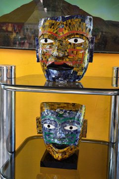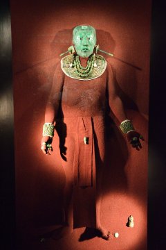 仮面部分のアップ。マヤでは金より翡翠の方が価値が高かった。ひとかけらの翡翠でコルテスの数千人の兵士の治療ができたという話もある。