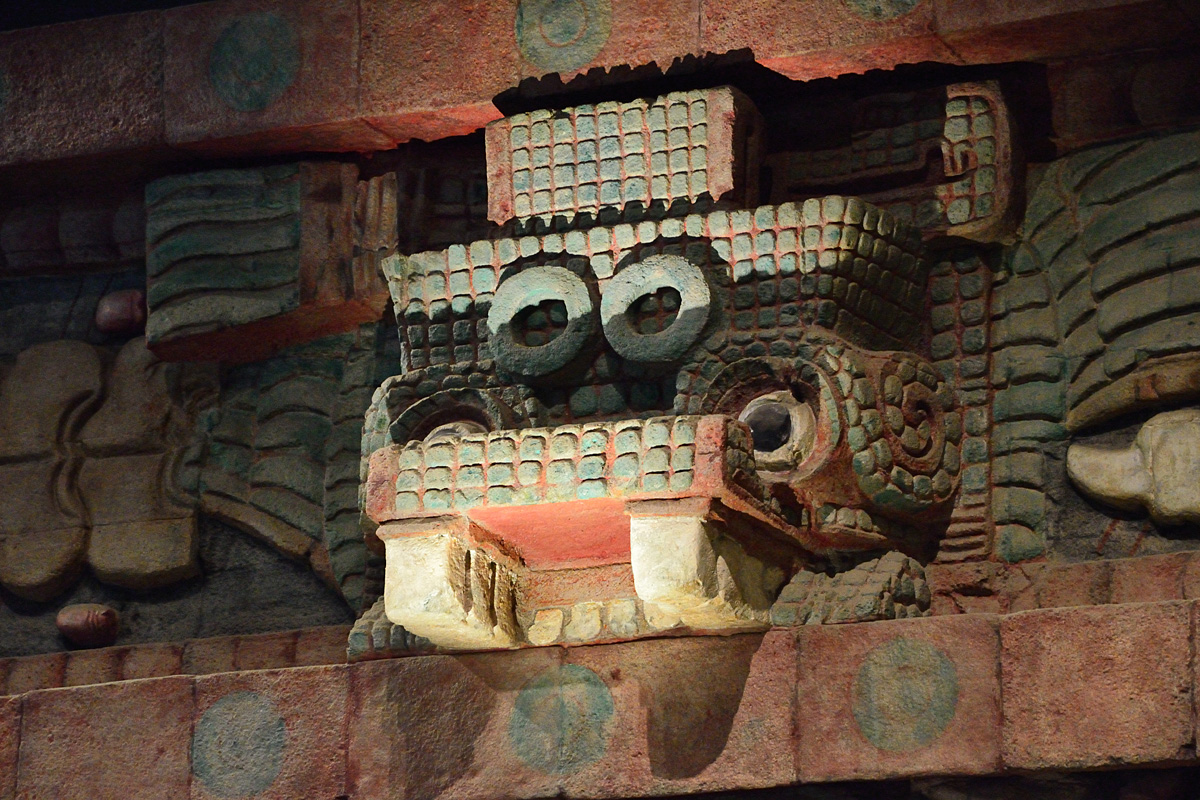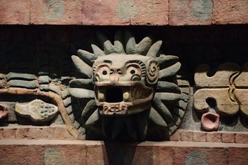 ケツァルコアトル神殿のケツァルコアトルのアップ。