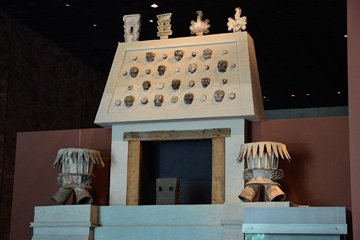 展示室内に作られているケツァルコアトル神殿の実物大レプリカ。本物を見られなかったので、これで我慢。