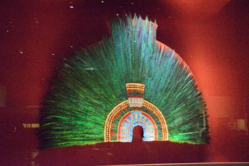 コルテスに贈呈したケツァルの羽根で作った王冠のレプリカ。本物は現在ウィーンにあるそうだ。