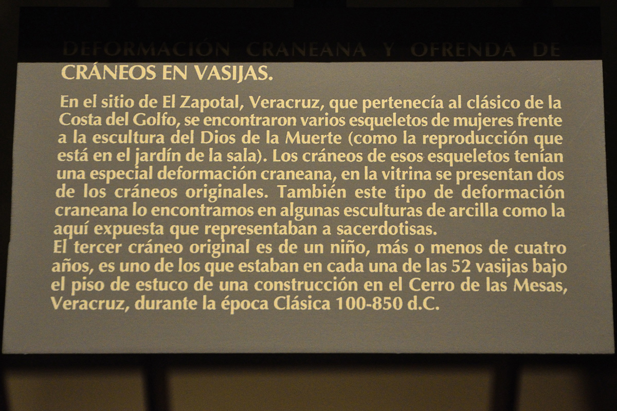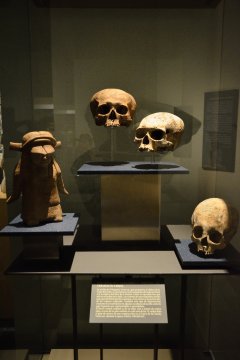 さりげなく展示してあった生贄のものと思われる頭蓋骨。若干扁平に変形させられているように見える。