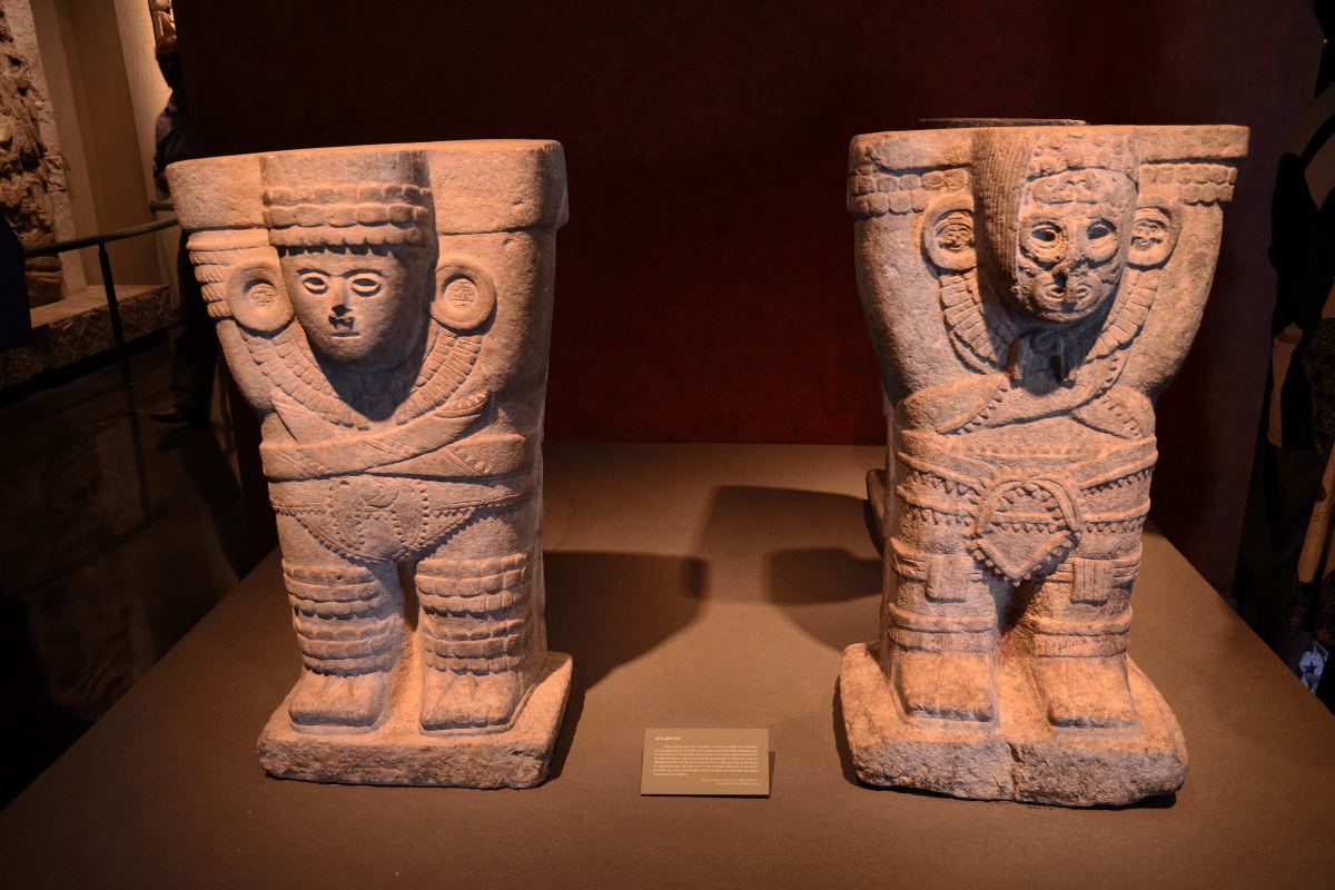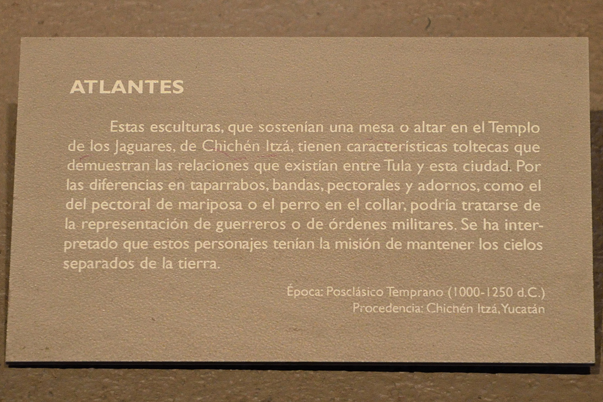 アトランテスは屋根を支えていた戦士の像。メキシコ・トルテカに特徴的なものなのでマヤのチチェン・イツァにアトランテスがあることからもトルテカ(トゥーラ)の影響が及んていた事がわかる。
