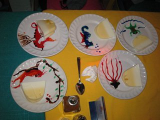 デザートにはシロップやチョコレートで枝にとまっているインコが描かれていた。超芸術的!。