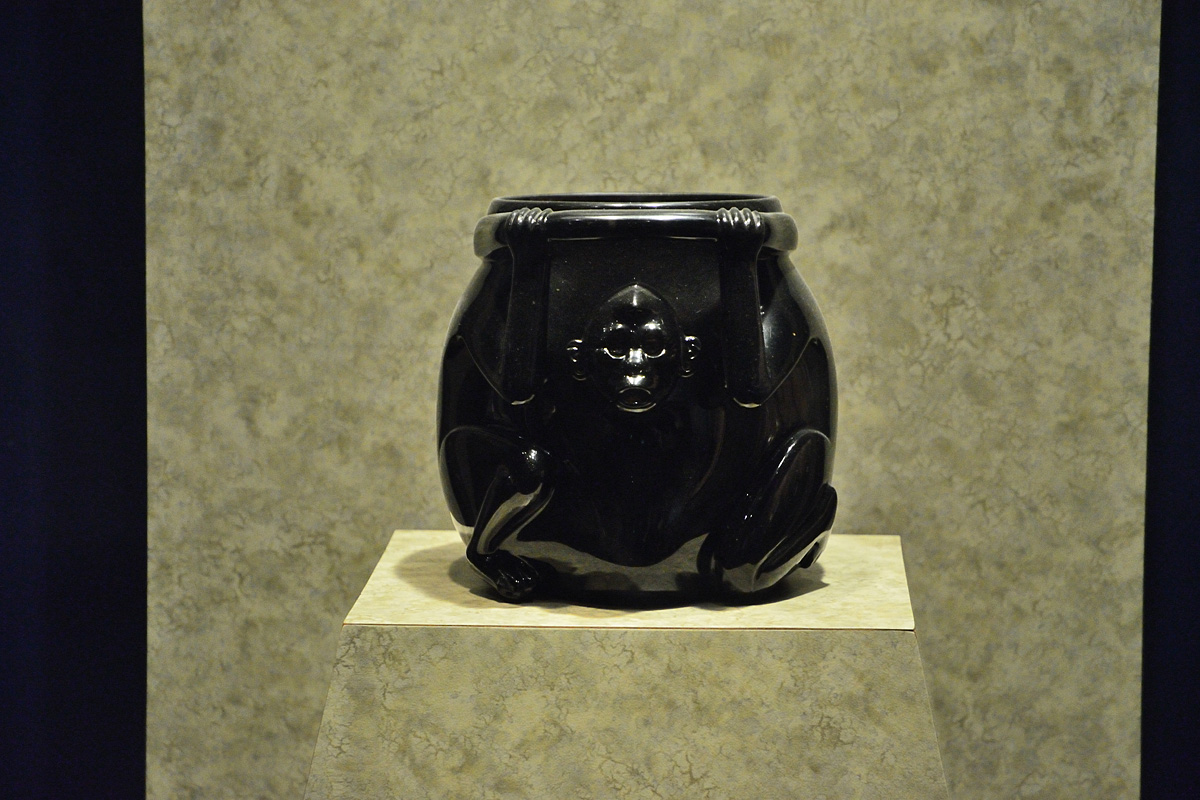 黒曜石を綺麗に加工して作った花瓶で猿がデザインされている。この博物館で非常に価値のある一品だそうだ。