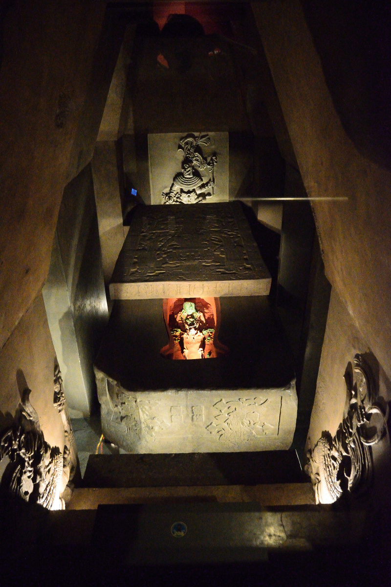 パカル王の王墓が実物大で復元されている。石室の大きさは高さ7m、幅4m、奥行き9m。初めて見つかった未盗掘の王墓である。