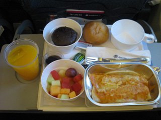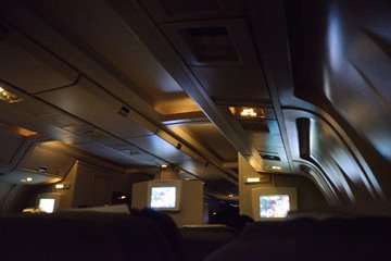 離陸するとすぐに食事が出てきた。もう深夜なので遅い夕食だ。肉料理だったと思う。ここでも無料のビールをありがたく頂いた。