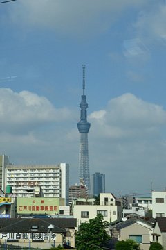 まだ観光気分で日本の景色を眺めていたら見えてきたのが建設中のスカイツリー。既に一番上まで出来上がっているようだ。