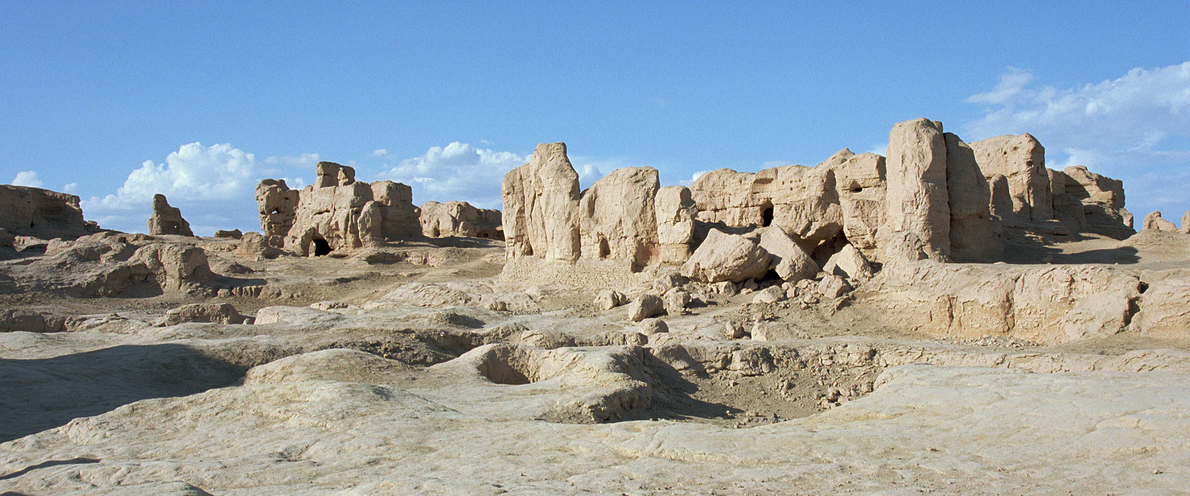 荒涼とした風景が広がっているが、構造物が日干し煉瓦でできているので遺跡であることがわかる。交河故城はガイドブック等から想像したよりも、ずっと広大であった。長さは1650mもあり、東京ディズニーランドの2倍以上はあるのではないだろうか。