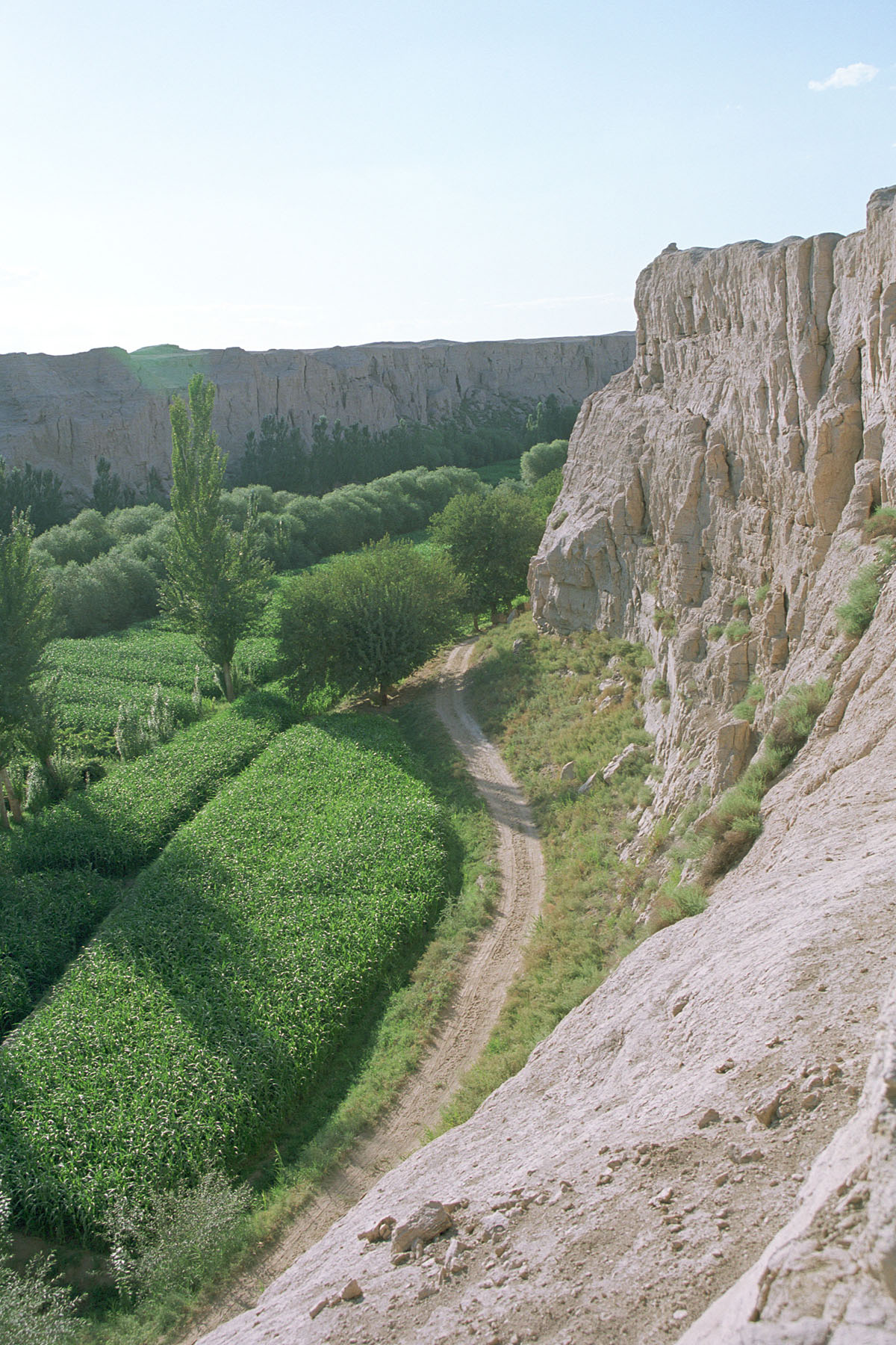 交河故城の周囲は30mの断崖で、自然の要害となっている。