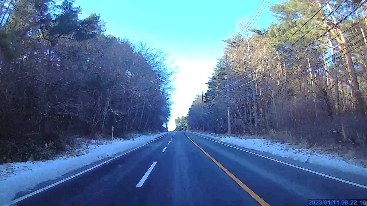 スキー場近くの道は両側にちょっと雪があるが道路には雪がありません。スキー場のHPにも「ノーマルタイヤでご来場いただけます」と記されていました。
