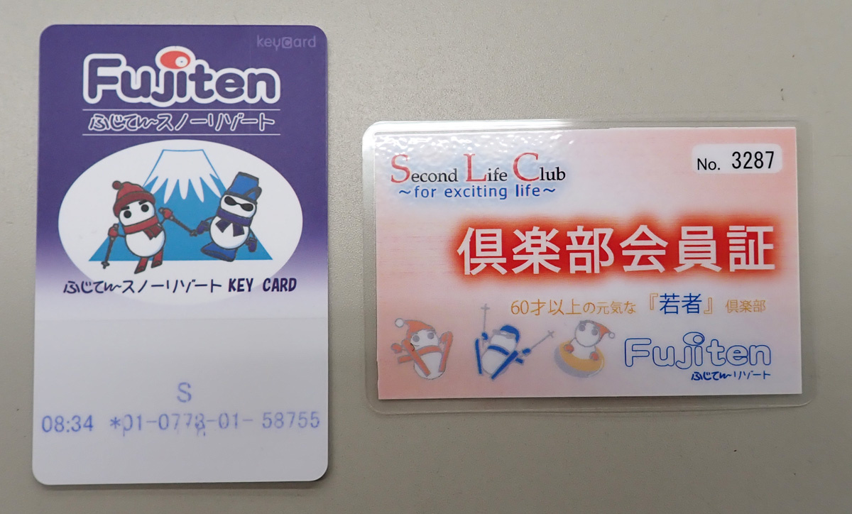 このスキー場には「ふじてんメンバーズ」と60歳以上限定の「セカンドライフ倶楽部」と言うのがあり各種割引を受けられます。セカンドライフの方にはシニア無料スキーレッスンもあるので一応入っておきました。今年はもう来ないと思いますが・・・。