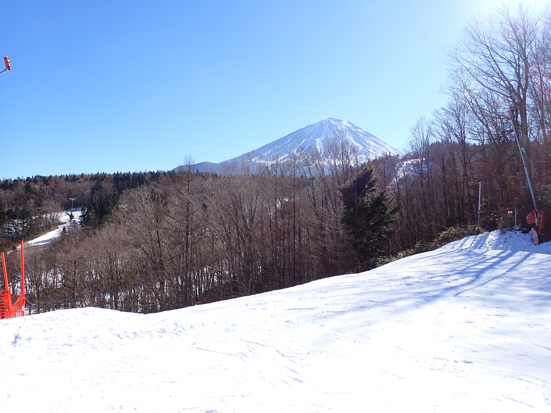 ロマンスリフト降り場にある富士山展望デッキ下の近く見える富士山です。富士山で滑るというのはやはり気分が良いですね。