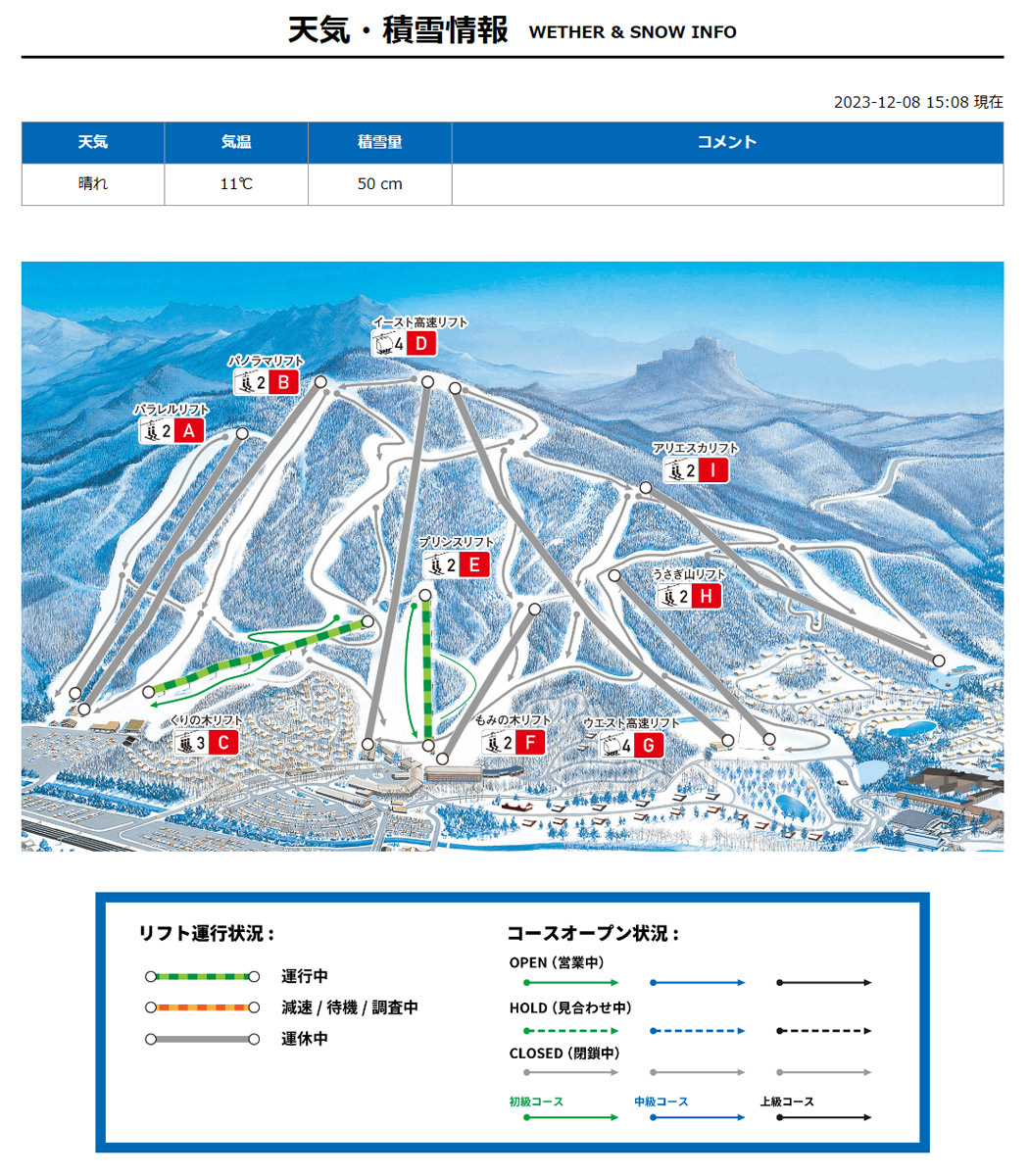 ![]() 多彩なコースがあるのですが、この日滑れるのはいずれも初級の「くりの木コース」(383m)と「プリンスゲレンデ」(376m)のみ。実は12/9から「もみの木コース」もオープンするのですが土日は混むし来週以降は天候が不安定の予報なので12/8に行きました。 まあこれで、ふじてん、イエティ、軽井沢と近場の人工雪スキー場を制覇したことになります。 |