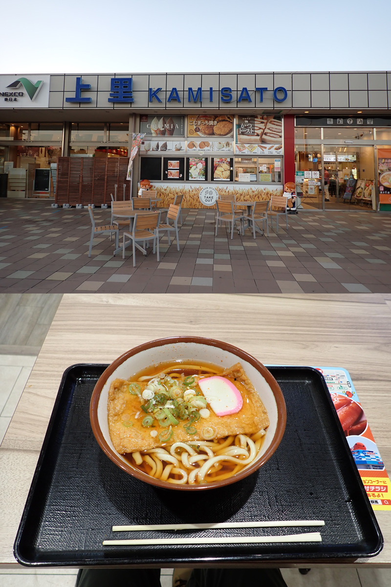 ![]() 上里SAで朝食(うどん)を食べました。上里にいる間に夜が明けてました。 |