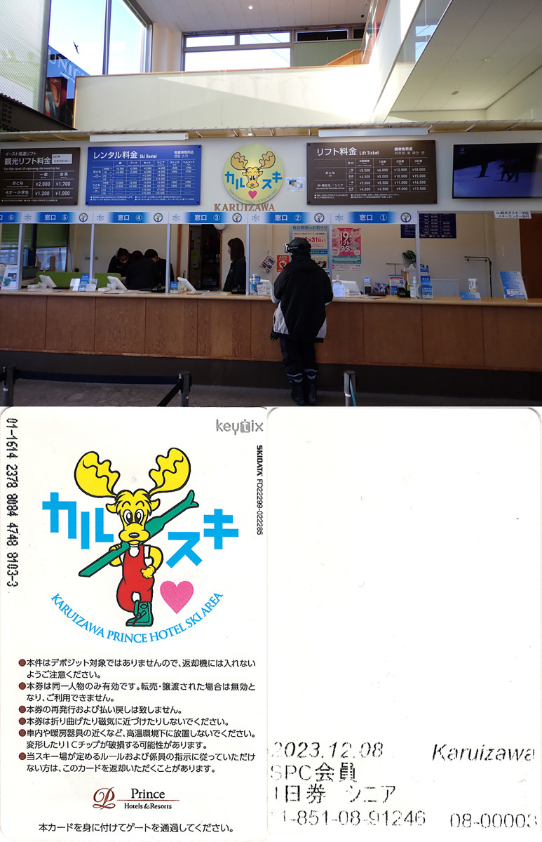 ![]() チケット売り場は開いていたので一日券を購入しました。一見紙の券のように見えてICチップ入りです。これは返却の必要はありません。 時期によって変動しますがSEIBU PRINCE CLUB会員かつシニアで4500円でした。結局午前中しか滑らなかったので4時間券4000円でも良かったかも。 |