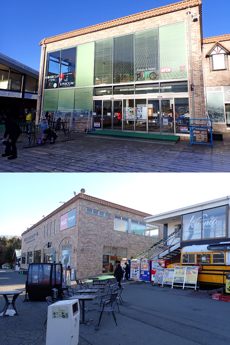 ![]() 上はスキーセンターをゲレンデ側から見たところで2階にプリモと言うパスタ屋さんがあります。 下は隣接する建物で2階にAMERICAN DINING ku-moがあります。確かアゼリアがあったはずだけど無いなと思いつつ昼食はここに入りましたが、今シーズンからアゼリアがAMERICAN DINING ku-moに変わった事が後でわかりました。 |