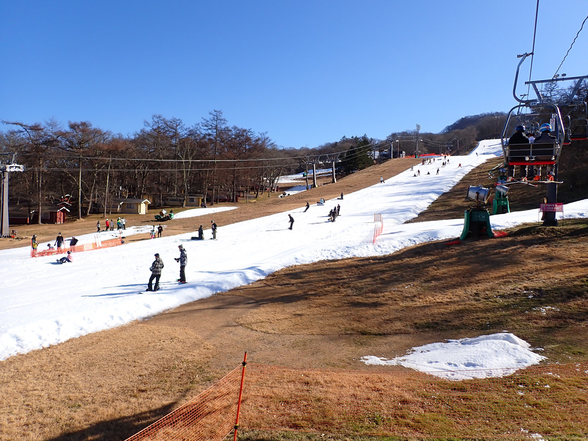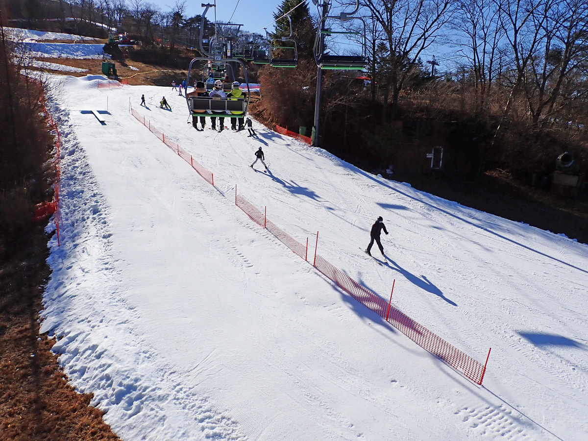 ![]() 次はリフトの上からコース撮影。「くりの木コース」の中間部です。まあまあ緩やかで小さな子供のレッスンも行われていました。 |