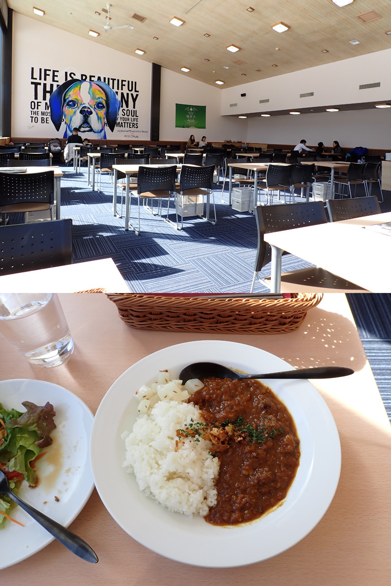 ![]() 混雑してきたし動画も写真も撮れたので11時過ぎには切り上げて、着替えてサッパリしてから昼食にしました。 AMERICAN DINING ku-moの壁面には大きな犬の絵がありますが鮮やかな青が印象的です。 ここは食券を買うのではなくテーブルにウエイトレスが注文を取りに来ます。ビーフカレー1600円也。 |