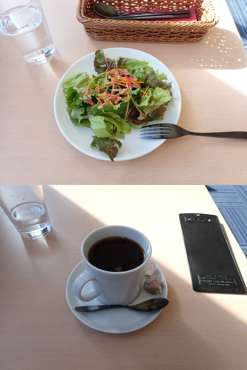 ![]() 追加のランチセット(サラダとたっぷりのコーヒー)600円也。 |