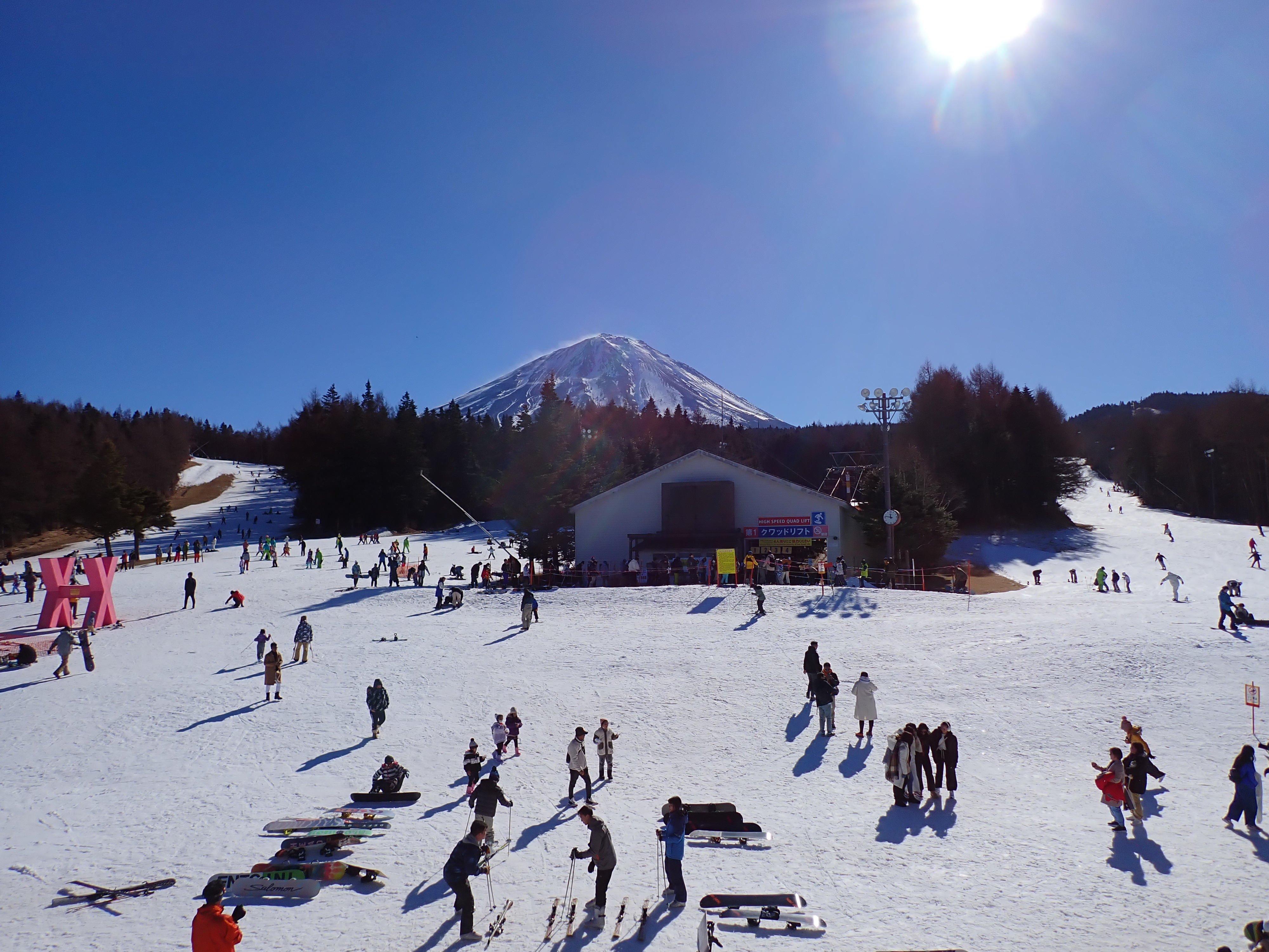 センターハウス2階から見た富士山とゲレンデです。レストランに行かなくても2階に上って景色を眺めるべきですね。