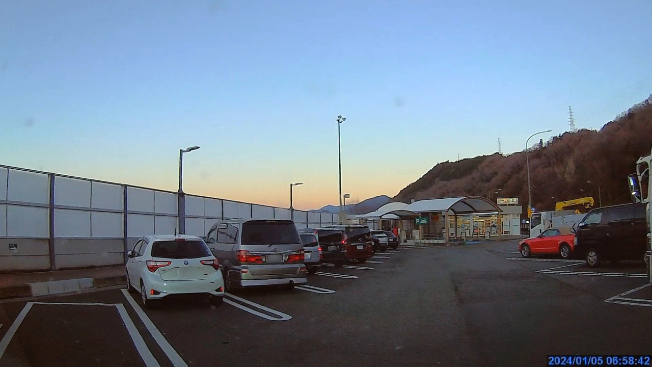 朝6時ちょうどに出発し朝食はクルマの中でスティックパンを食べ、途中のトイレ休憩も大きなSAだと時間がかかるので藤野PAに立ち寄りました。