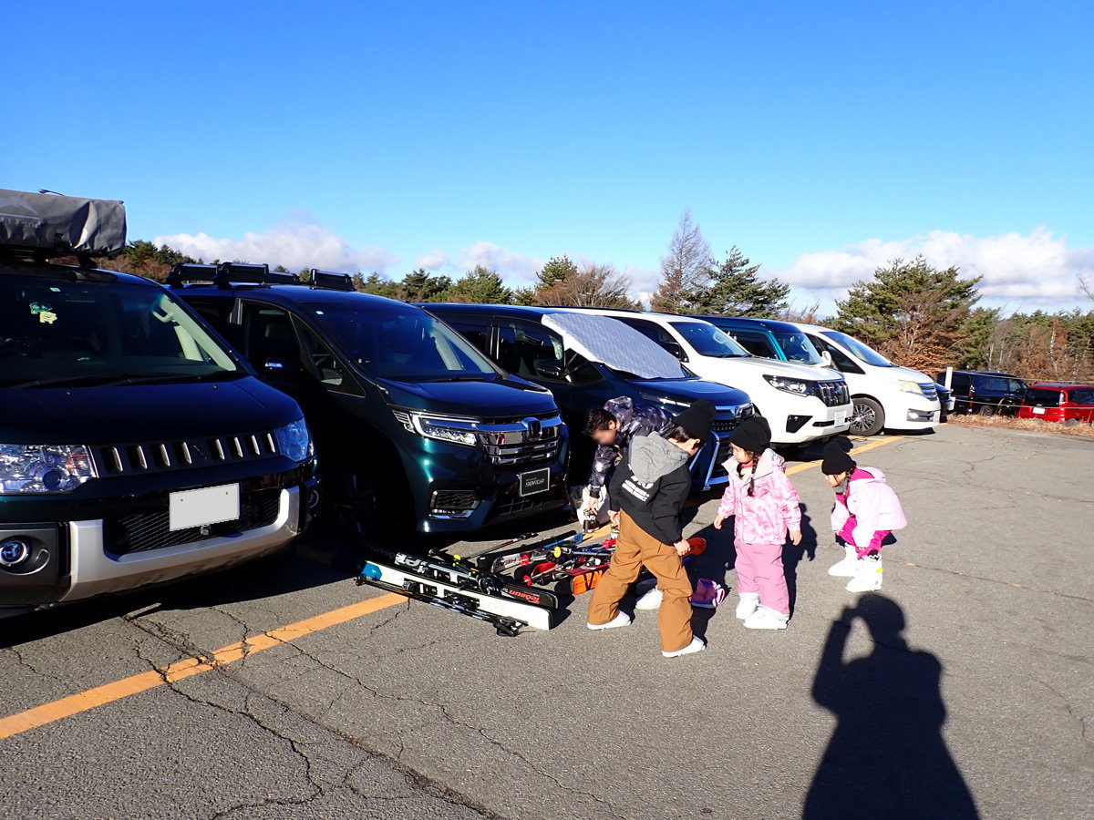 今回がスキーキャリアの初仕事。直前に次男が板を購入したので2セット積んでいきました。