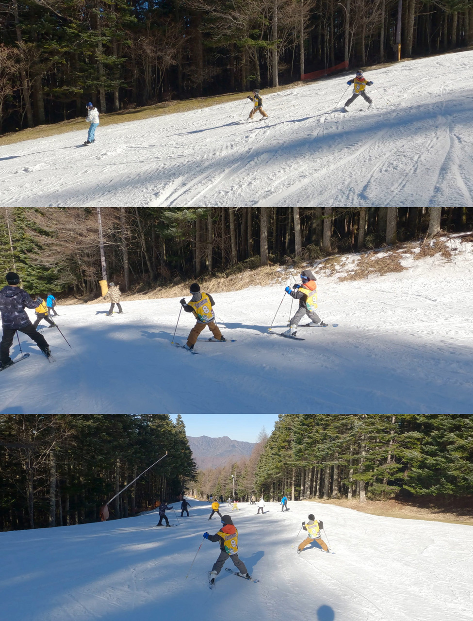 中段では孫その2、下段では孫その1が滑ってます。ボーゲンでターンする練習をしてました。