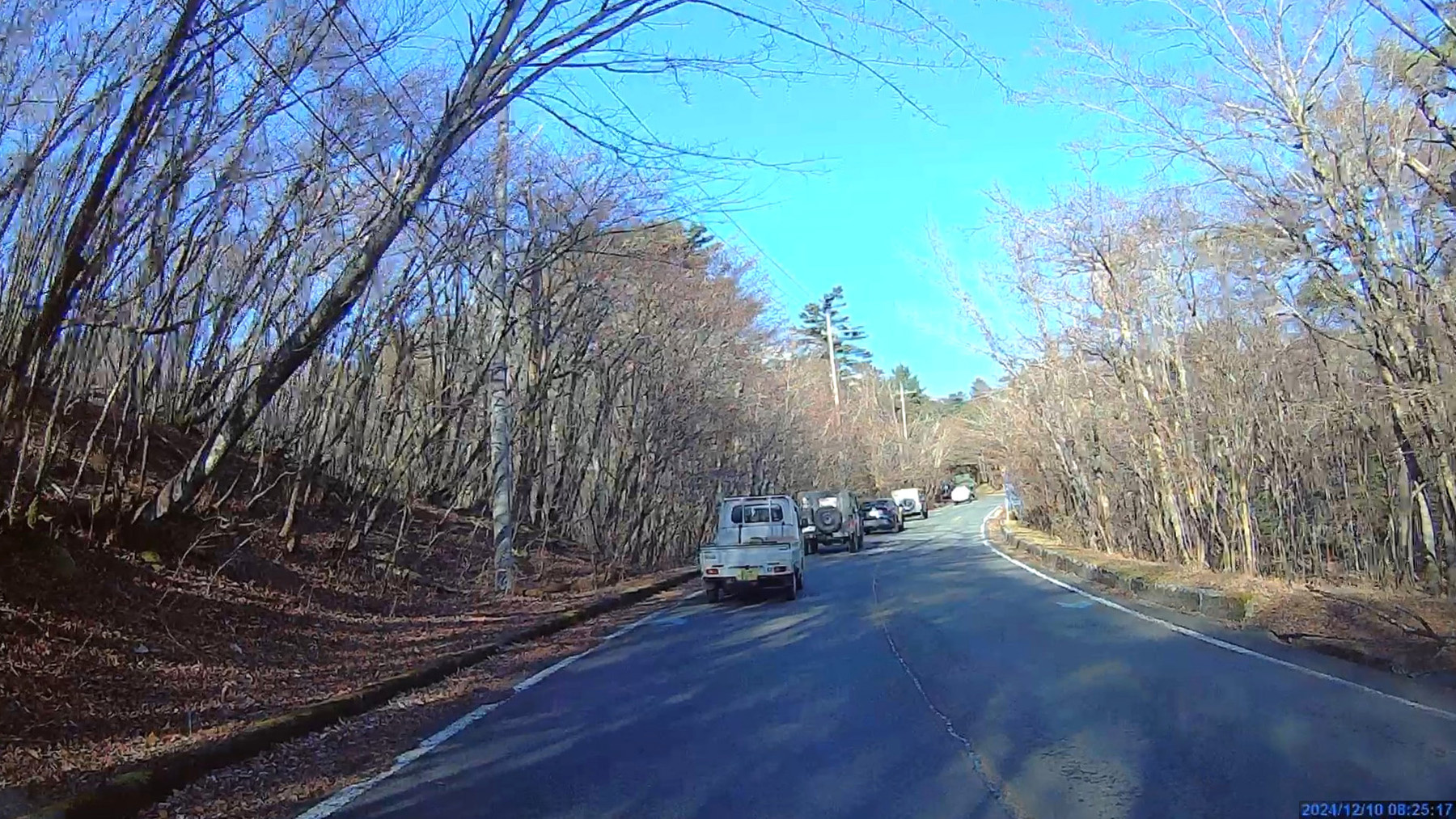 スキー場へ登る道ではノロノロ走る自衛隊の車列の後ろについてしまい、10分間ほどノロノロ走行(15Km/hぐらい)でした。何か危険物でも運んでいたのかな。