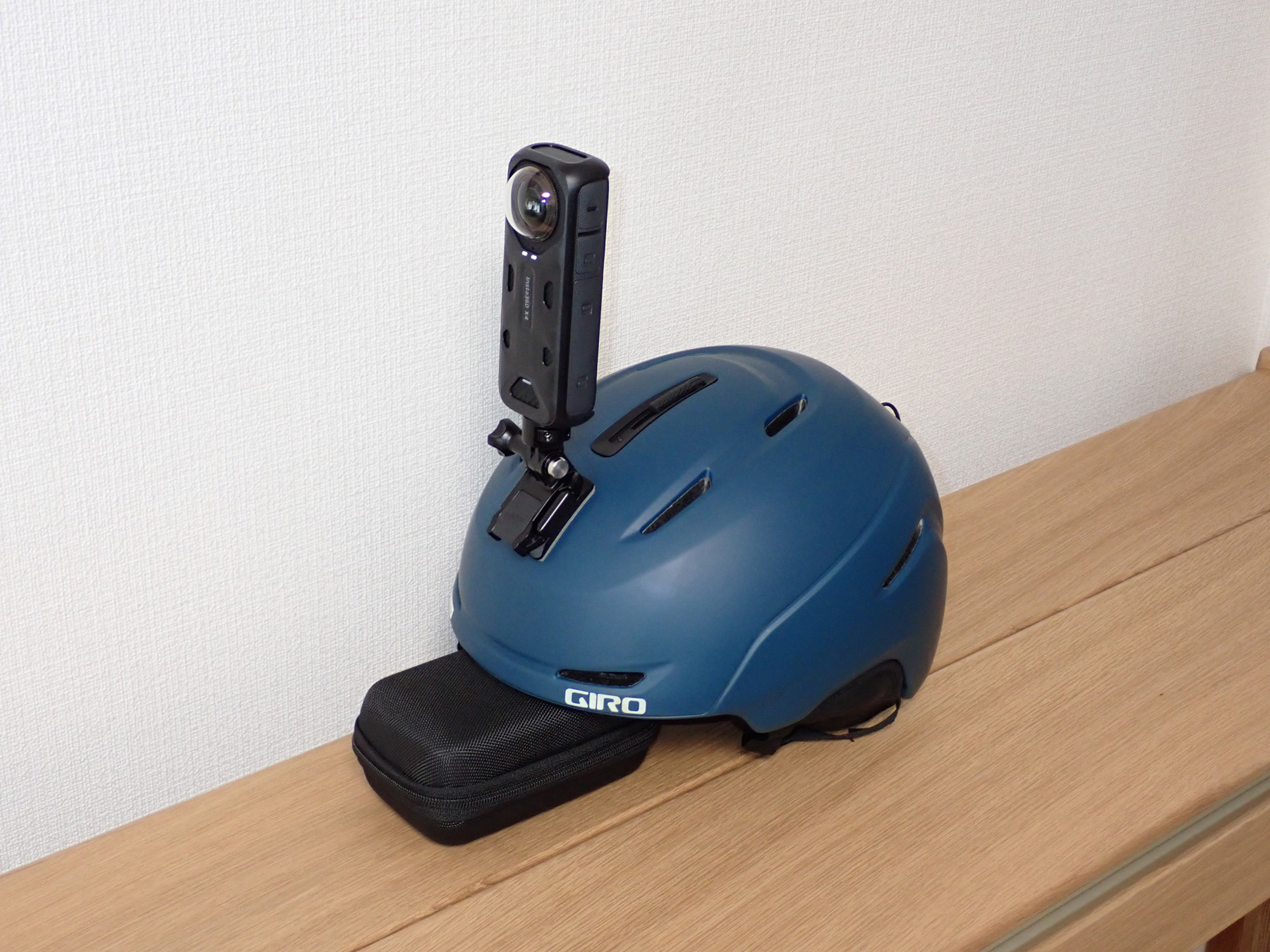 数回滑ってからInsta360X4を装着。こんな感じで取り付けます。GoProより重いし長いのでふらつくかなと思ったら案外大丈夫でした。