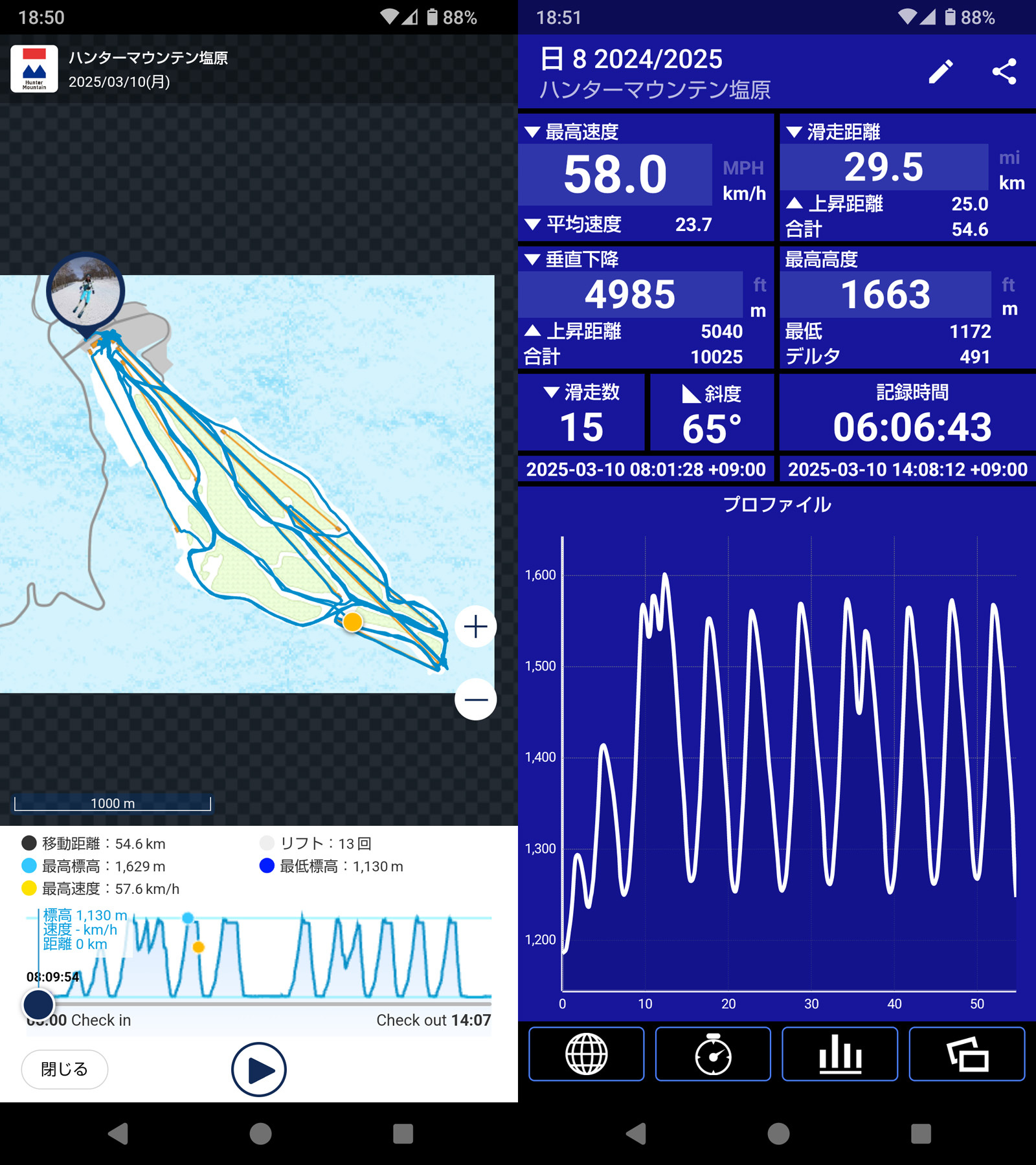 本日の滑走記録です。リフト13回(うちゴンドラ8回)です。