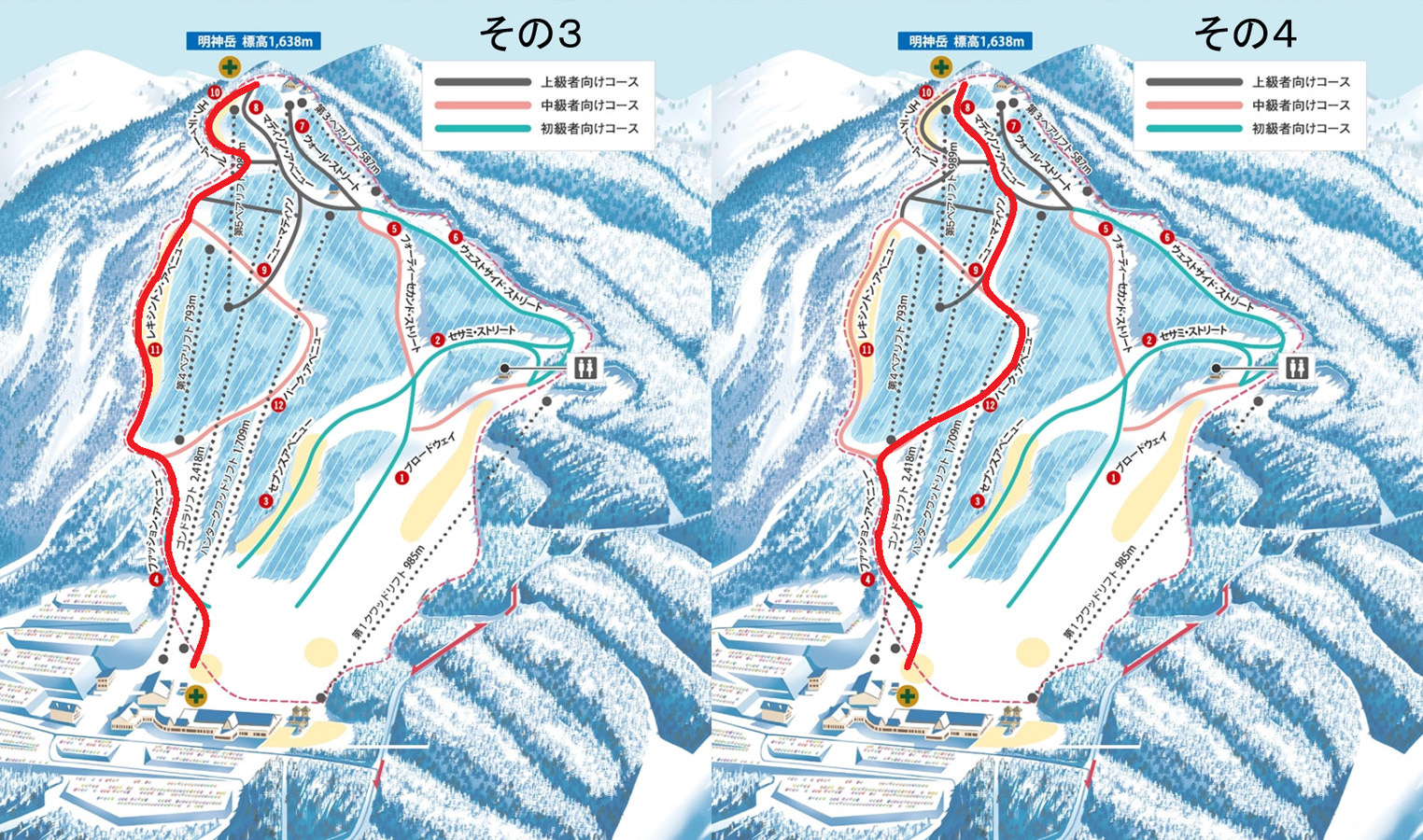 午前中に撮影したのはこの2本。西側の2コースです。このスキー場は北西向き斜面です。