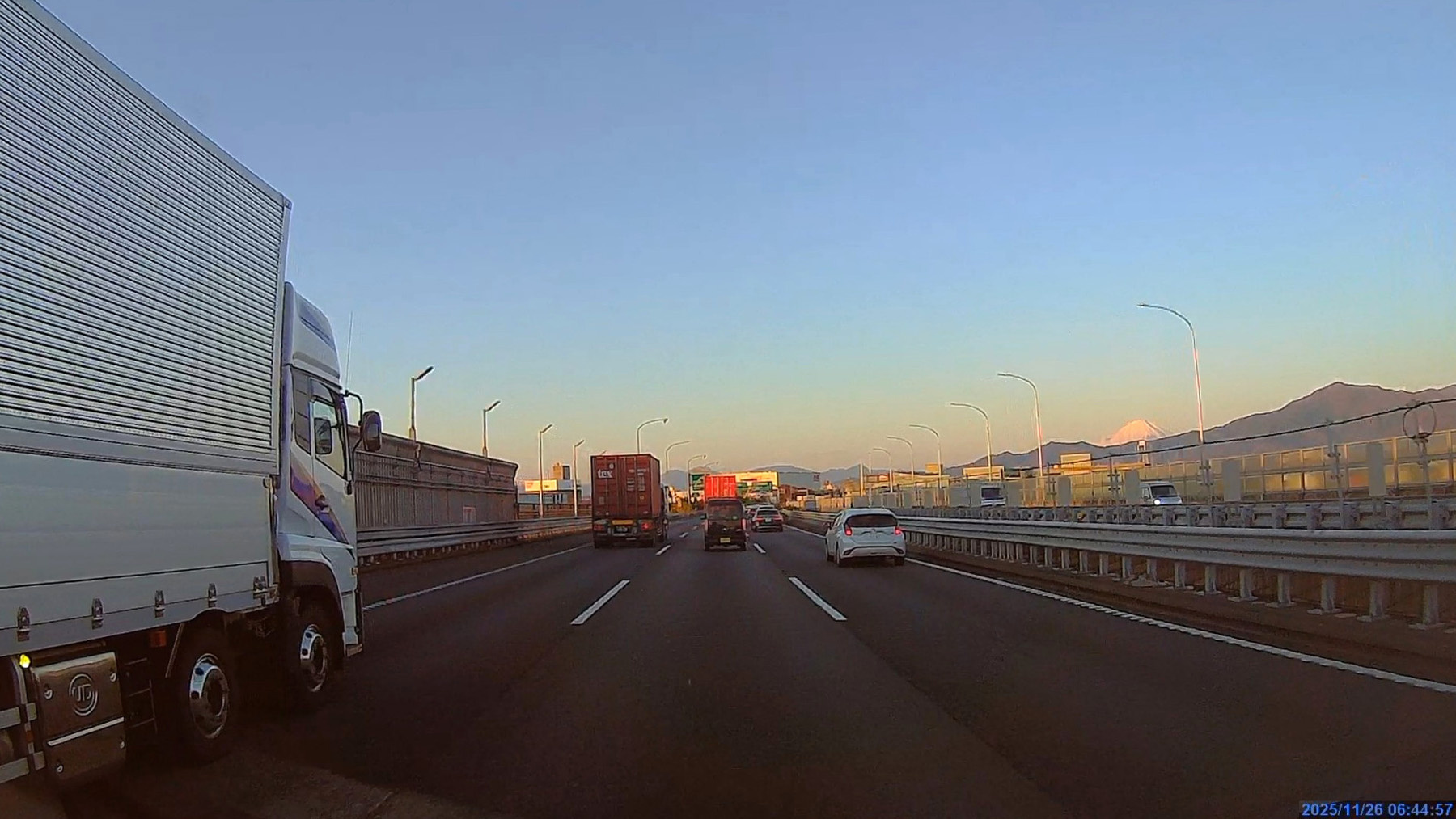 06:01に出発。東名を走っていて最初に富士山が見える瞬間はいつも感動的です。